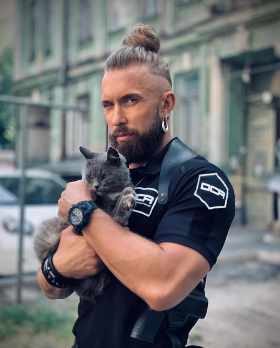 С первых дней войны Алексей Суровцев занимался спасением заброшенных животных. В июле 2022 г. в городе Ирпень создал приют для кошек “Бородата Котомамуля”.