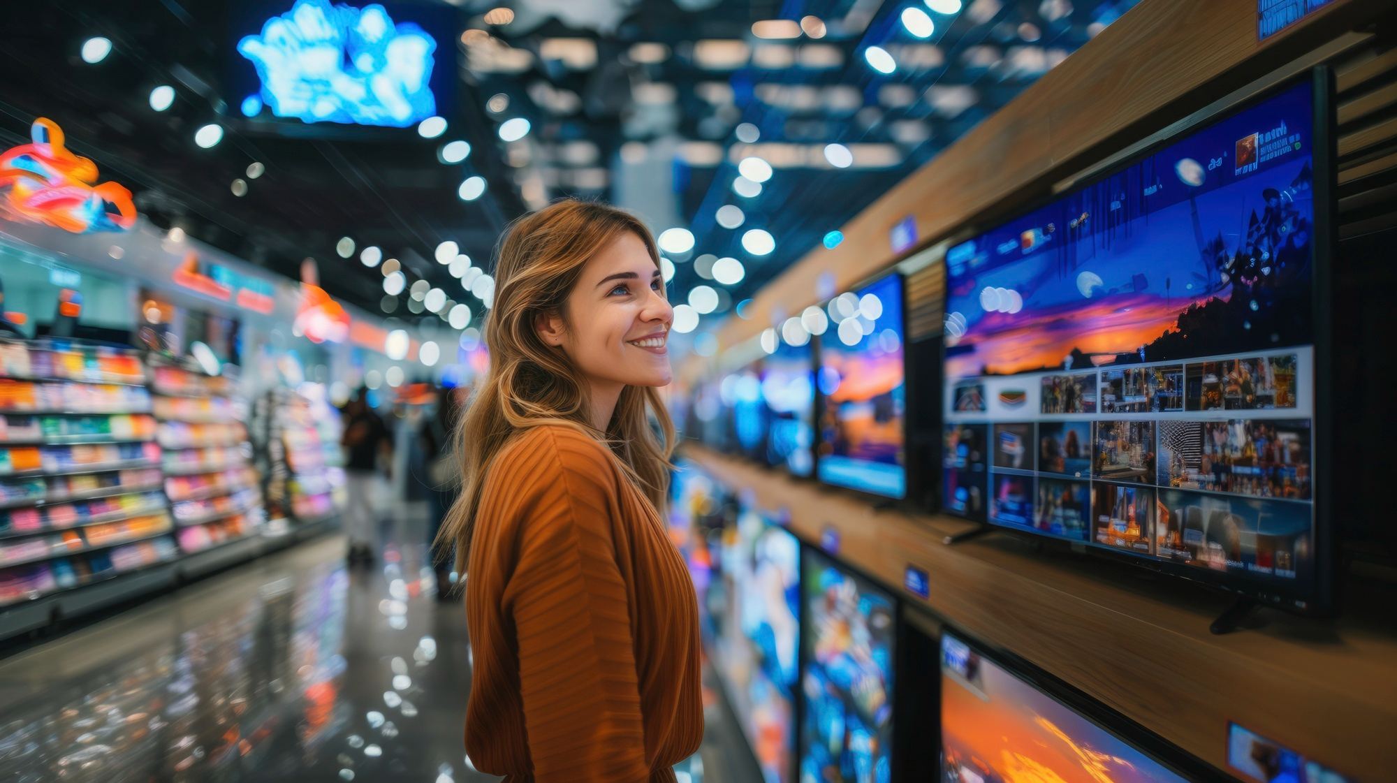 Такое изображение специально адаптировано под яркое освещение торгового зала. В результате даже средняя модель может выглядеть эффектно, а премиальные OLED или QLED-панели кажутся почти идеальными.