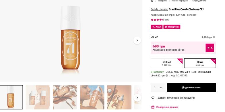 Еще недавно эти бразильские хиты приходилось искать за границей. Однако теперь украинские любители парфюмерии могут приобрести Sol de Janeiro Brazilian Crush Cheirosa значительно дешевле.